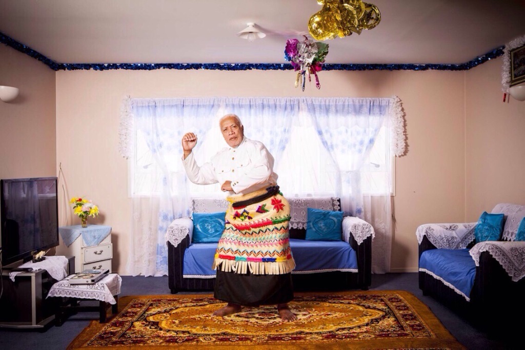 Tu’itupou Aniseko is my partner’s father; he’s a stoic man, a proud Tongan. Vinesh was working on a series documenting Pacific people in their home environments, and Tu’i accepted the request to be photographed. He stood motionless mostly and then, broke out into Tongan dance.