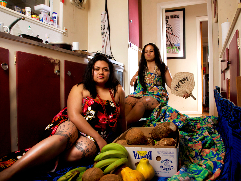 Tanu was awarded this year’s Auckland Festival of Photography Sacred Hill Annual Commission and his new series, “Tama’ita’i Pasifika Mao’i” opened last night at Silo 6. I love that Tanu talks about ‘creating a universe of Pacific identity’ from his unique position in South Auckland. Of this work, he explains the idea of capturing the exhaustion of performing culture for the dominant gaze.