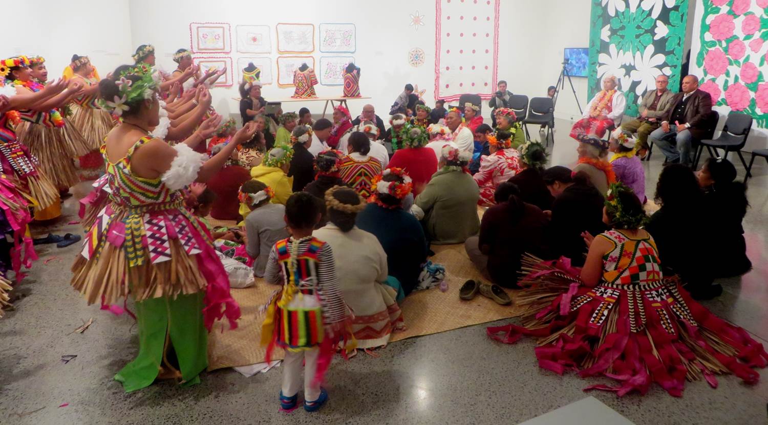 The Council representatives sat on the periphery, the Tuvalu community filled the room with the elders at the centre. The cultural performance at a Pacific art exhibition opening has become a cliché, but here, the buffer of the mamas and papas between the formal guests demonstrated the wholeness of the community, and that Pacific art and creativity is inextricable from Pacific people.